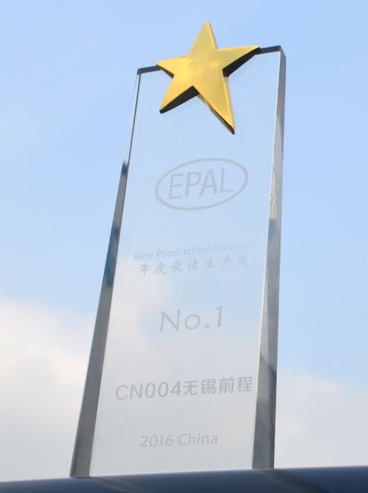 經(jīng)過歐洲托盤協(xié)會的審核評定,前程公司榮獲EPAL 2016年度生產(chǎn)商第一名。會上,EPAL CEO Martim為前程公司頒發(fā)了獎杯。