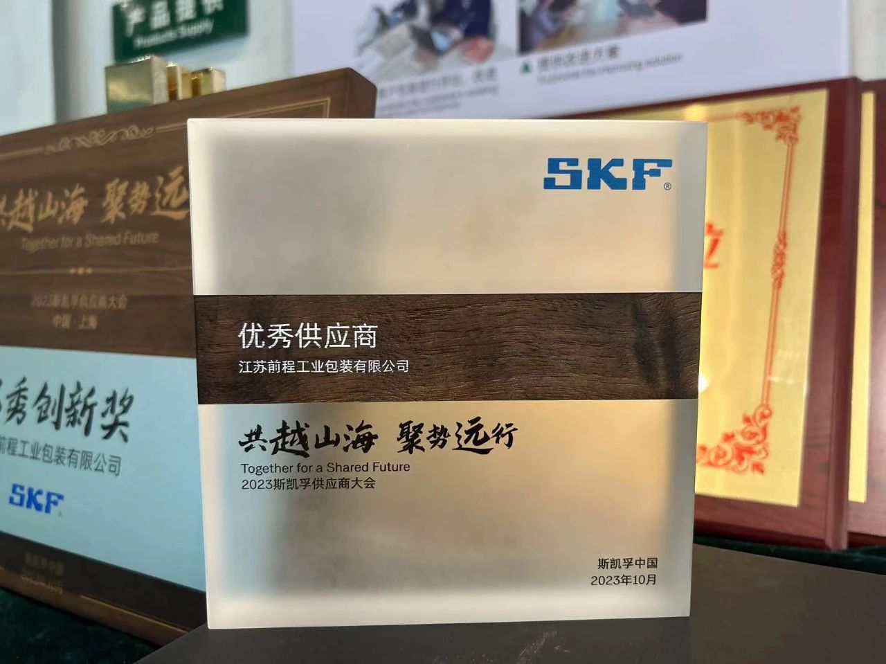 2023年10月27日,“共越山海,聚勢遠行”,2023 SKF供應商大會在上海嘉定召開。前程公司以穩(wěn)定高質(zhì)量的品質(zhì)、卓越的服務能力以及對行業(yè)綠色可持續(xù)發(fā)展的積極推進,榮獲“優(yōu)秀創(chuàng)新獎”,前程公司總經(jīng)理徐穎先生出席會議并代表領獎。